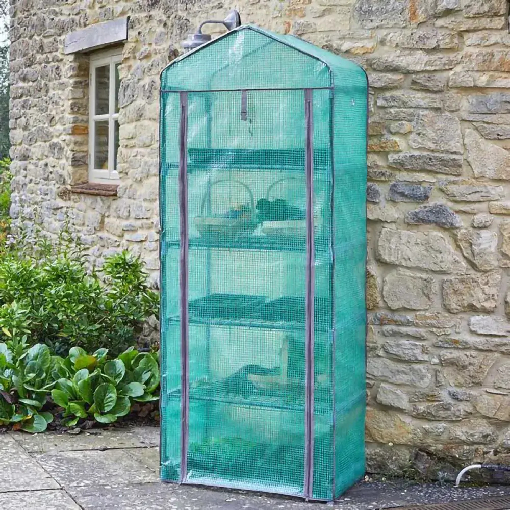 GroZone Classic drivhus til altan – 5 hylder – Ekstra stærk | Forstærket PE-cover, ventilation & lynlås – Til frø, stiklinger, grøntsager & frugt – 70 x 50 x 180 cm
