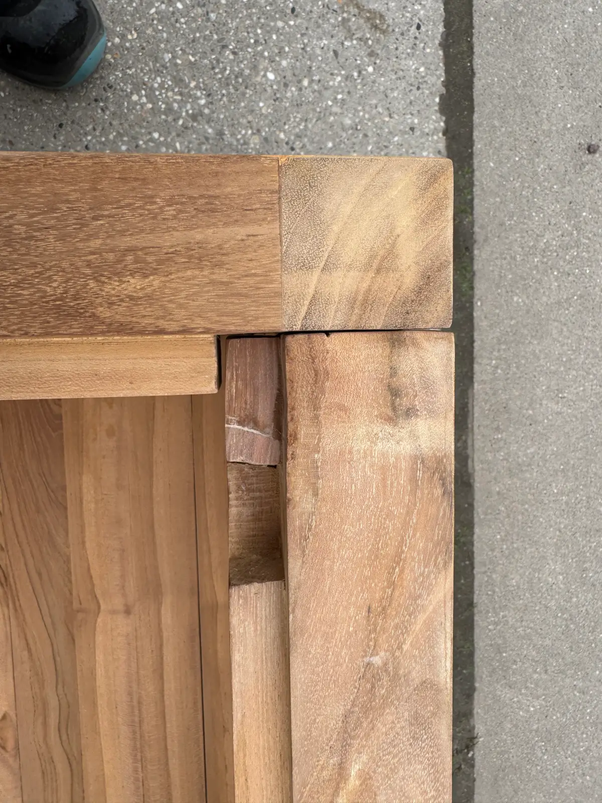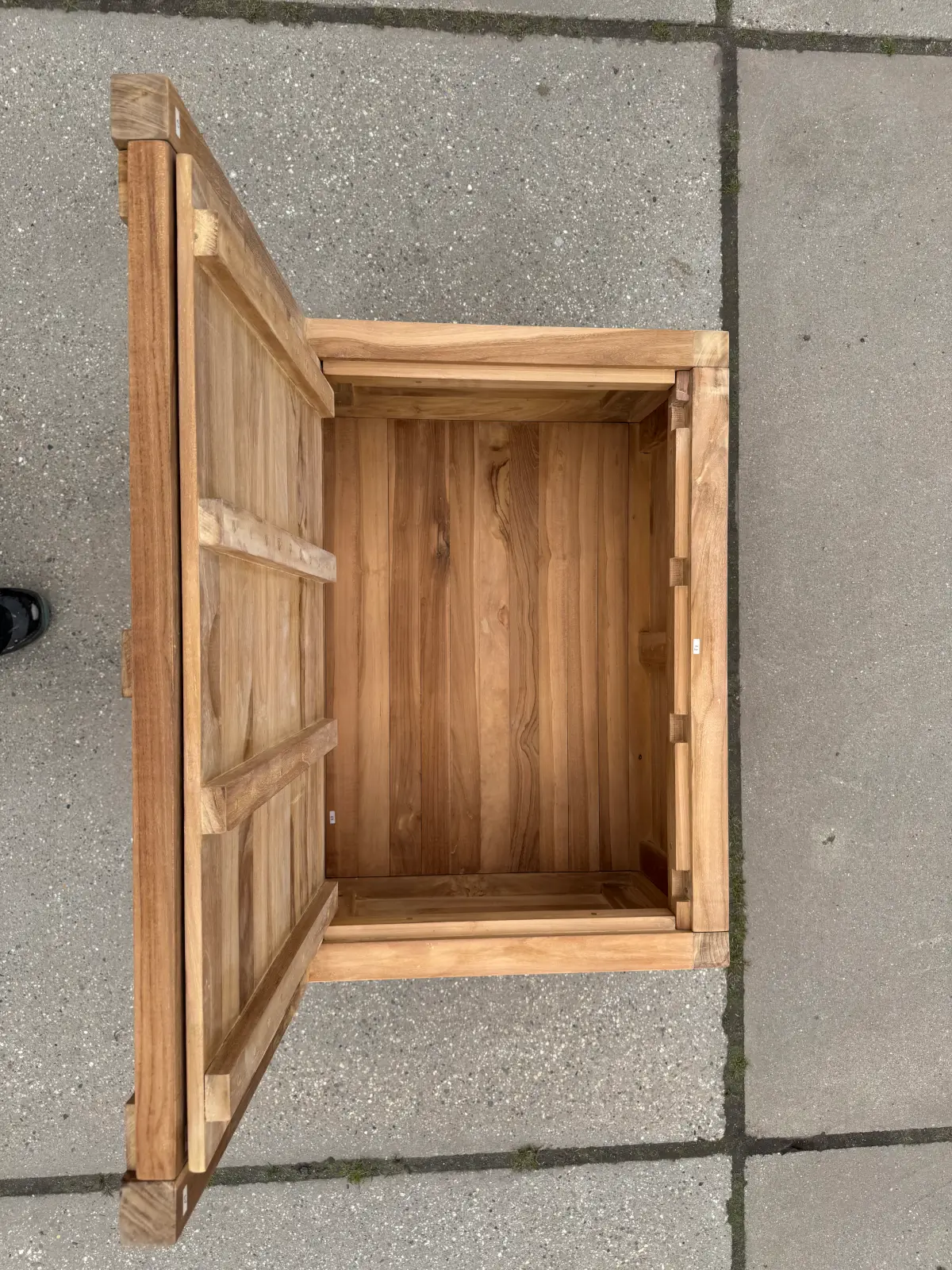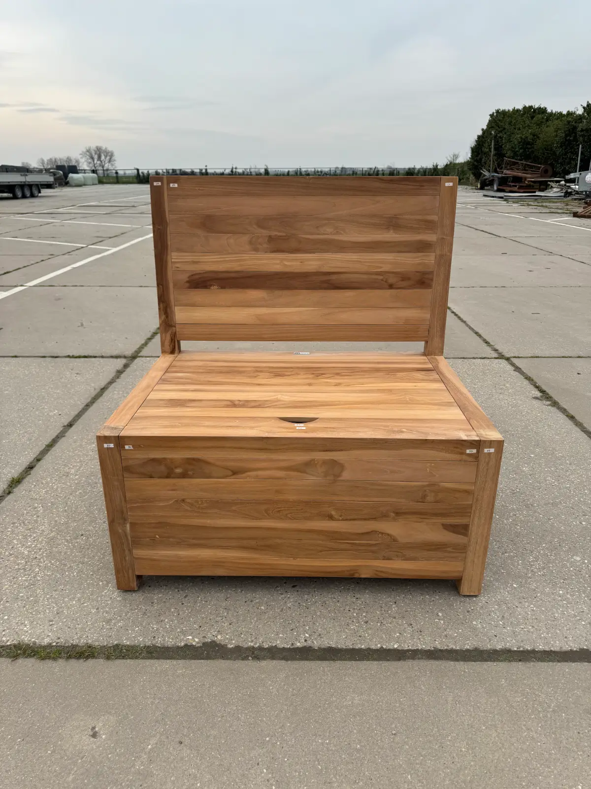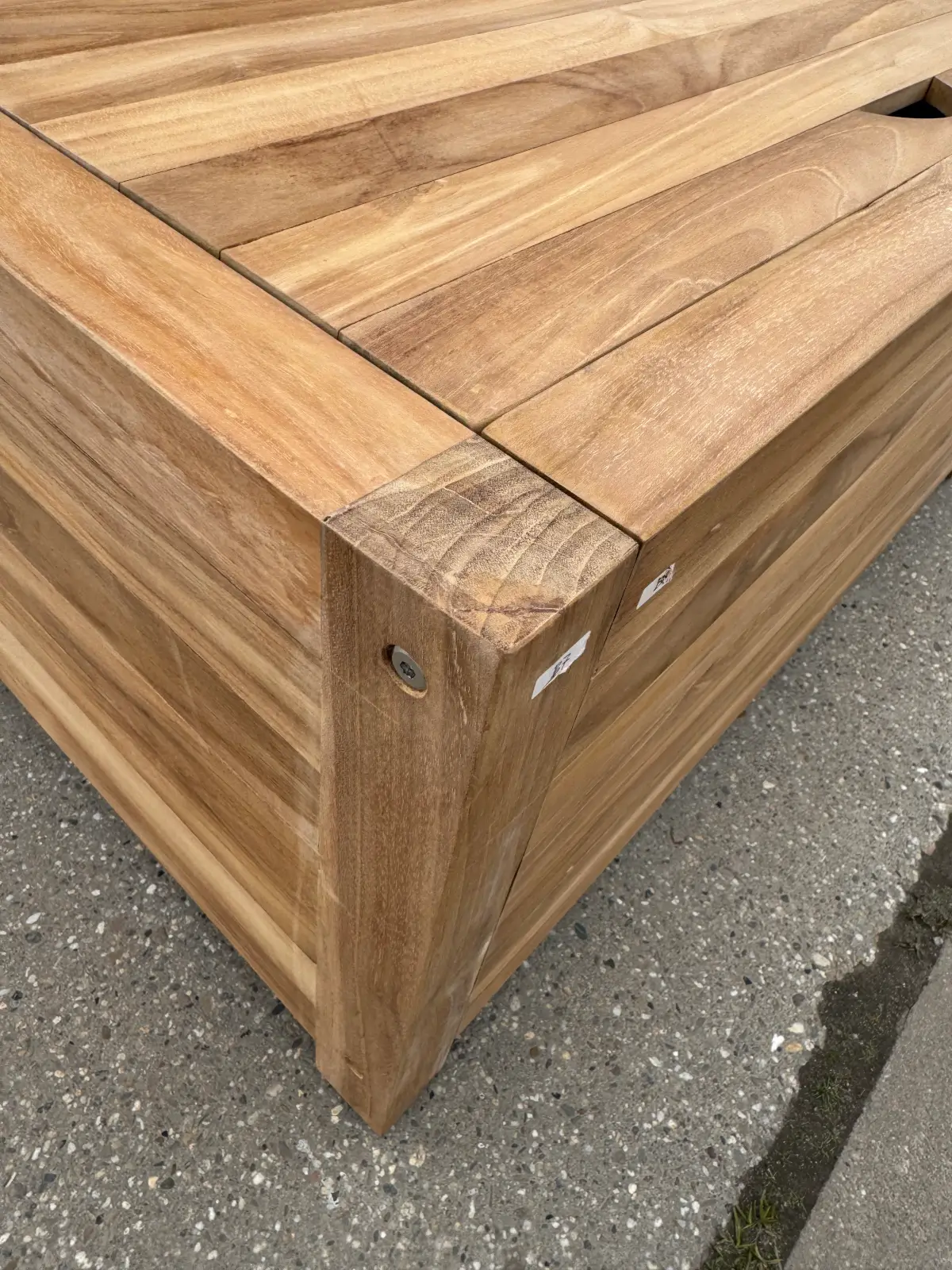 Teak wood is naturally very weather-resistant and will turn a beautiful grey within 8 to 12 months. Want to maintain the original color? Treat the bench with a protective oil before use.